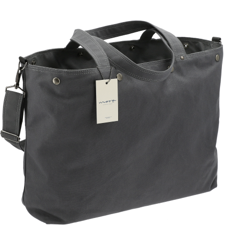 Designed and manufactured in downtown Pittsburgh, these Moop® totes are made from water-resistant 100% cotton canvas fabric. Moop bags have a 14 year history of quality construction and durable materials from a female owned American small business. The porter makes a great bag for weekend getaways or daily outings. There is space for clothes, a few books, a light beach blanket and a battery powered lantern (for a twilight rendezvous, of course!). Perfect for early morning picnic dates or just your daily run around town. This bag is versatile. Weekends or daily use. Carry your books, digital devices, tote your baby gear or gym gear. Comes with adjustable and removable cross body strap and top snap closure. Each tote has a removable retail hangtag. Inventory arriving 3/1/21.